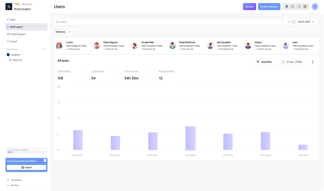 projects, whiteboards, lists, gantt, calendars, tags, time tracking filters and much more